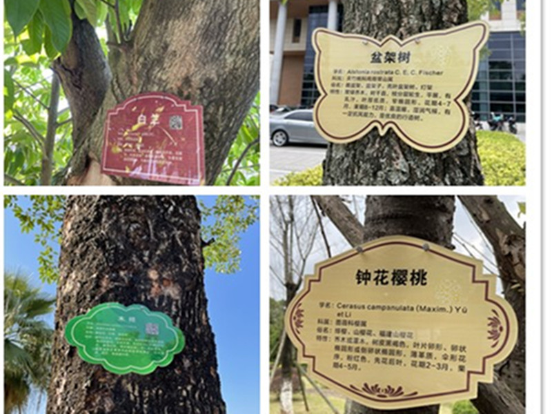 为了普及绿化知识,同时增强广大师生爱绿护绿的生态意识,近期,后勤管理处校园管理科给旗山校区教学区主要乔木佩戴上了“名片”。